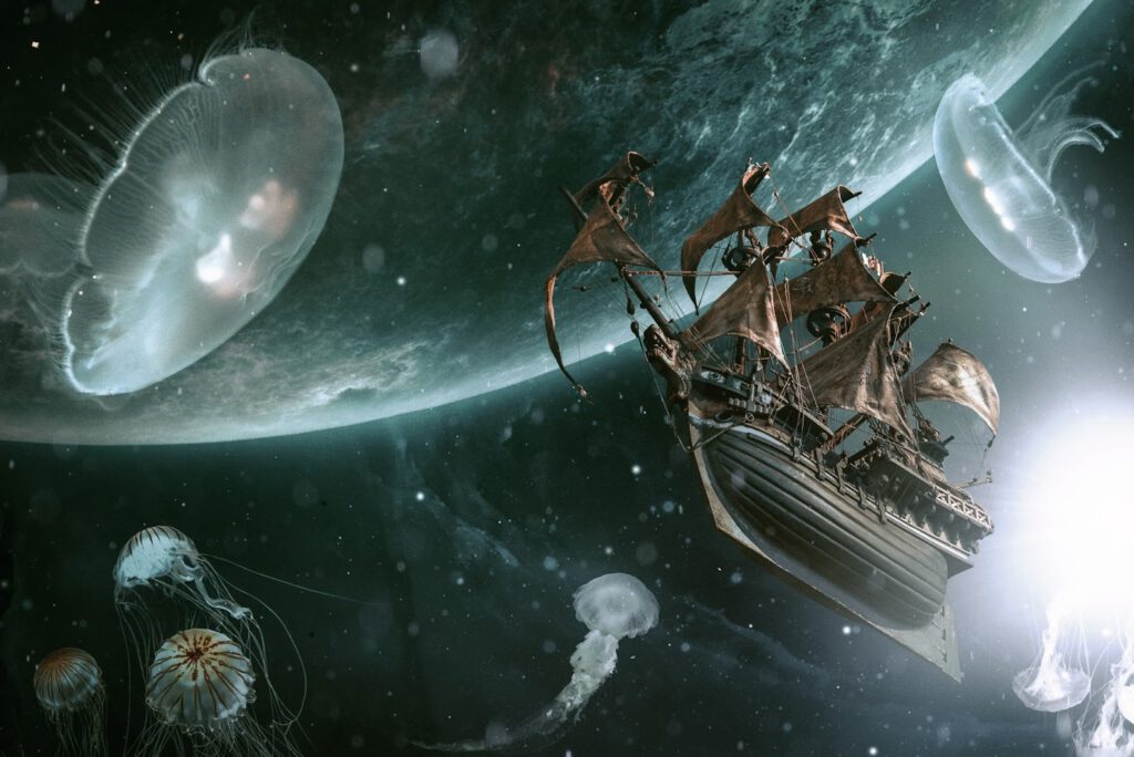 Das hat sich inzwischen geändert. Zum einen, weil ich in 3D-Programmen (fast) alles bauen oder als Stock-Asset laden kann, was ich für Fotomontagen benötigen würde, und zum anderen, weil generative KIs jede Verwirklichung meiner Ideen, die möglichst wenig mit unserer alltäglichen Realität zu tun haben sollen, noch um ein Vielfaches beschleunigen.